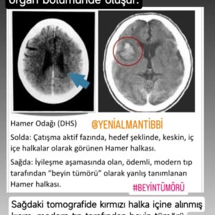 Hamer halkaları, Hamer odağı, Beyin tomografisi , Aktif aşama , Çözüm aşaması, İyileşme aşaması , Beyin tümörü